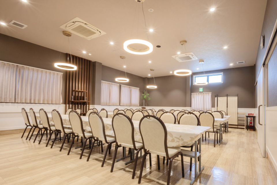 みらいホールつちどには2つの自社ホールがあります。、アットホームでリラックスできるホール。1組ずつのご案内となるため大切な方との最後の時間を、ご家族でゆったりとお過ごしいただけます。